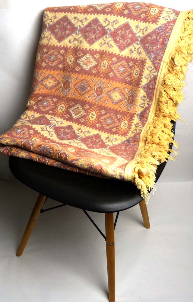 総刺繍 / コットン/ カーペット / ラグマット /ソファーカバー(188×119cm )【中古】