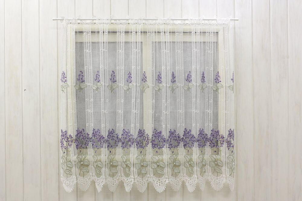 総柄レース カフェカーテン 約126×95cm [Lilac]