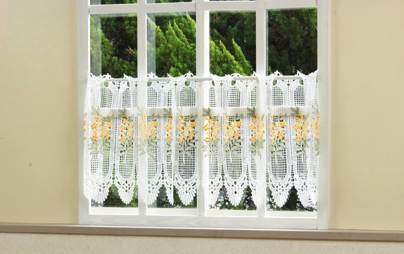総柄刺繍&ギュピール カフェカーテン 約135×60cm [Brilliantly-Crystal]