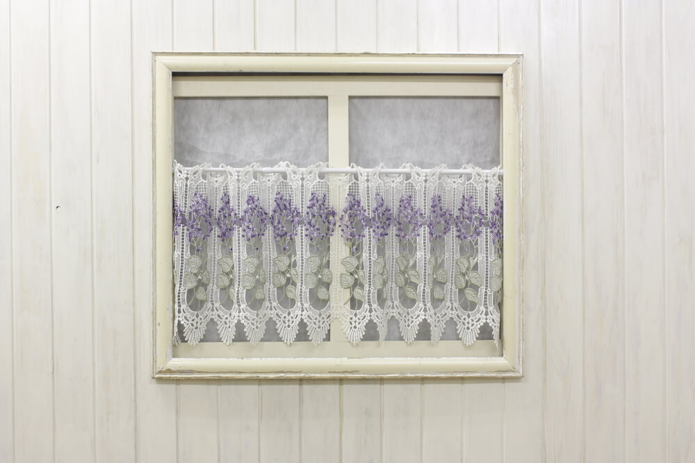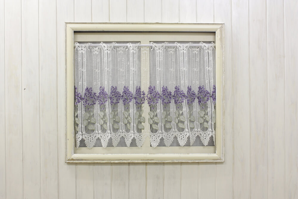 総柄レース カフェカーテン 約126×45cm [Lilac]