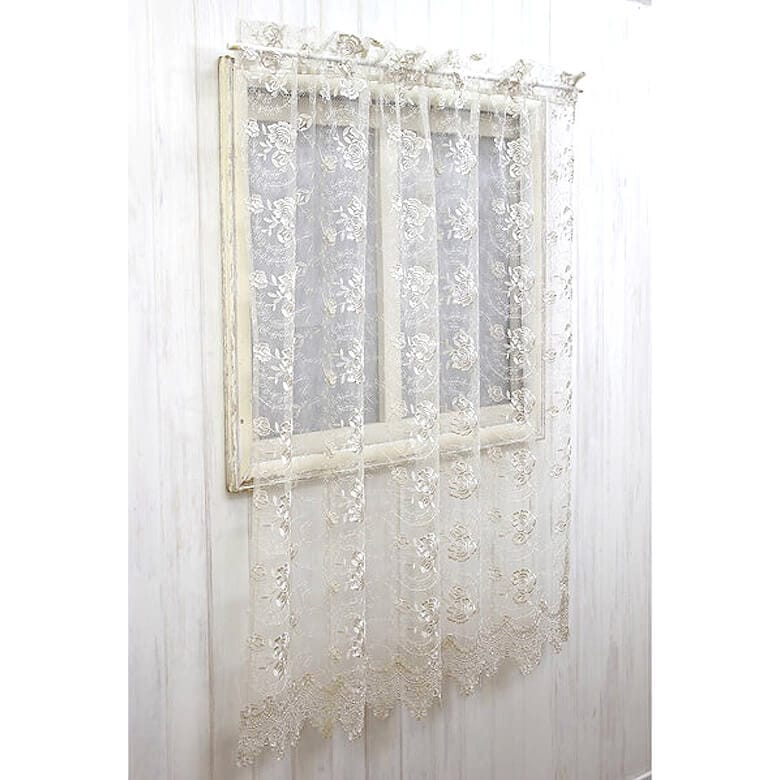 カットワーク刺繍 カフェカーテン 約130×90cm [Rose Metopes]