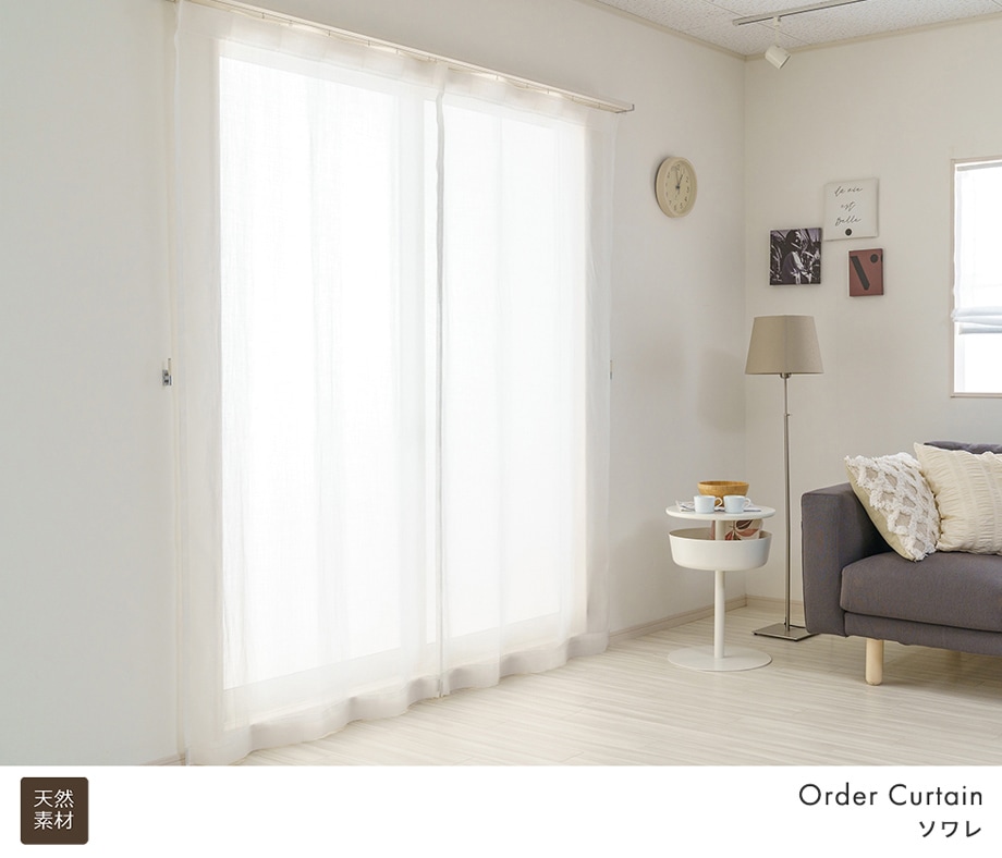 シルケット加工を施した麻100%天然素材レースカーテン「ソワレ」ホワイト