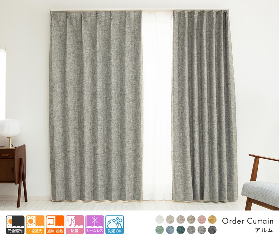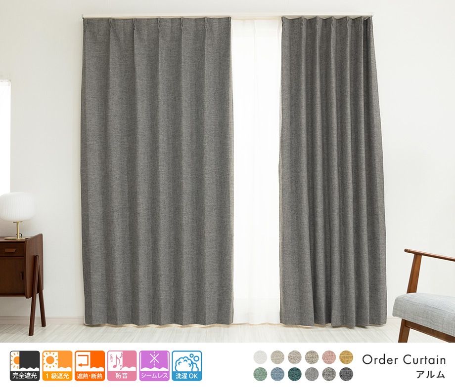 3層構造で軽く柔らかい完全遮光カーテン「アルム」ライトグレー