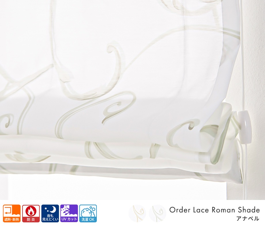 【幕体のみ】オーナメント文様をプリントした防炎遮像レースローマンシェード「アナベル」ベージュ【買い替え用】