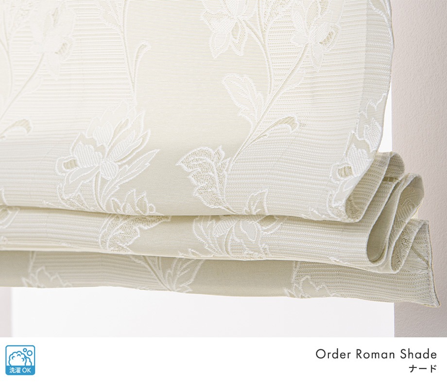 【幕体のみ】上品な花柄模様のジャガード織り厚地ローマンシェード「ナード」アイボリー【買い替え用】