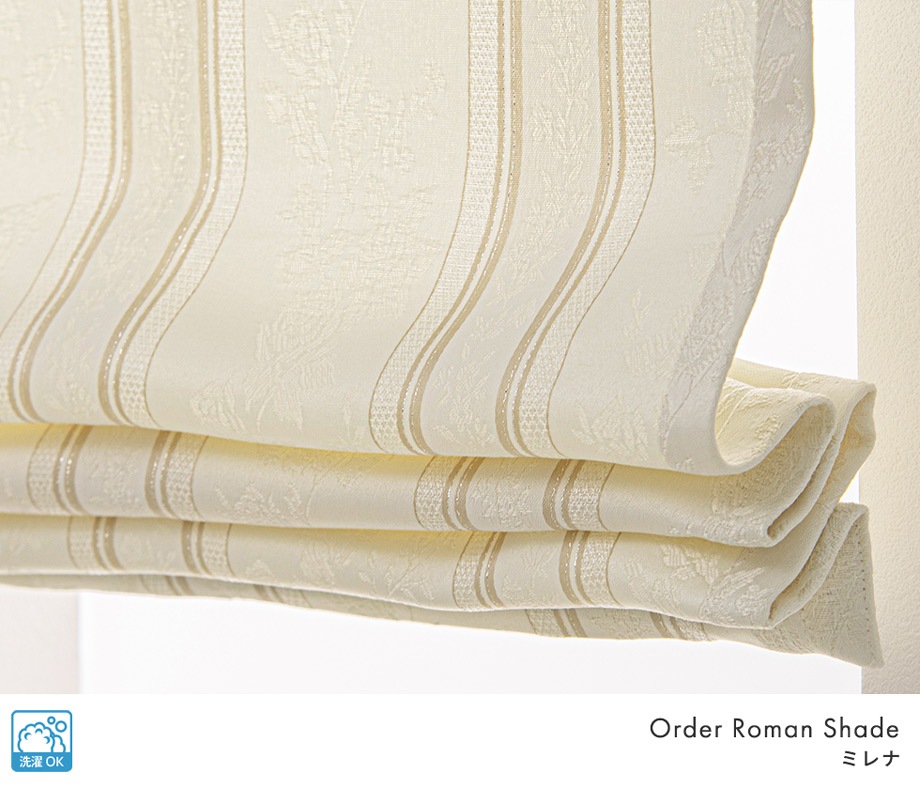 【幕体のみ】上品な花柄模様のジャガード織り厚地ローマンシェード「ミレナ」アイボリー【買い替え用】