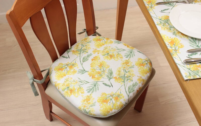 ミモザ柄プリント 紐付シートクッション 約43×45cm [la mimosa]