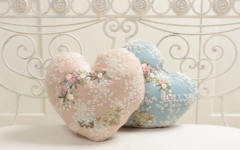 リボン刺繍 ハートクッション 約35×37cm [Florist]