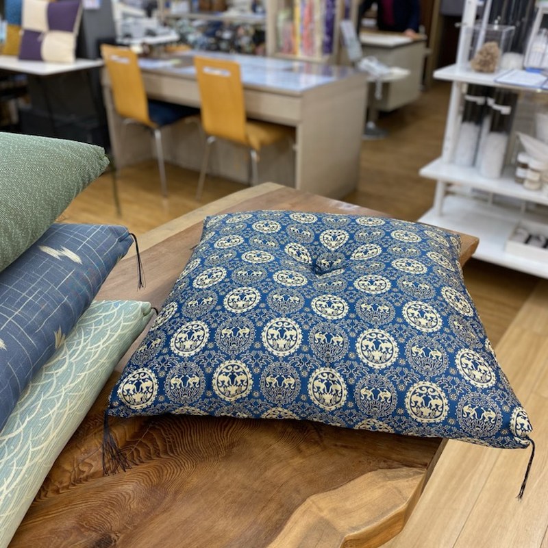 座布団 柿渋染め 藍染色(あいぞめいろ)