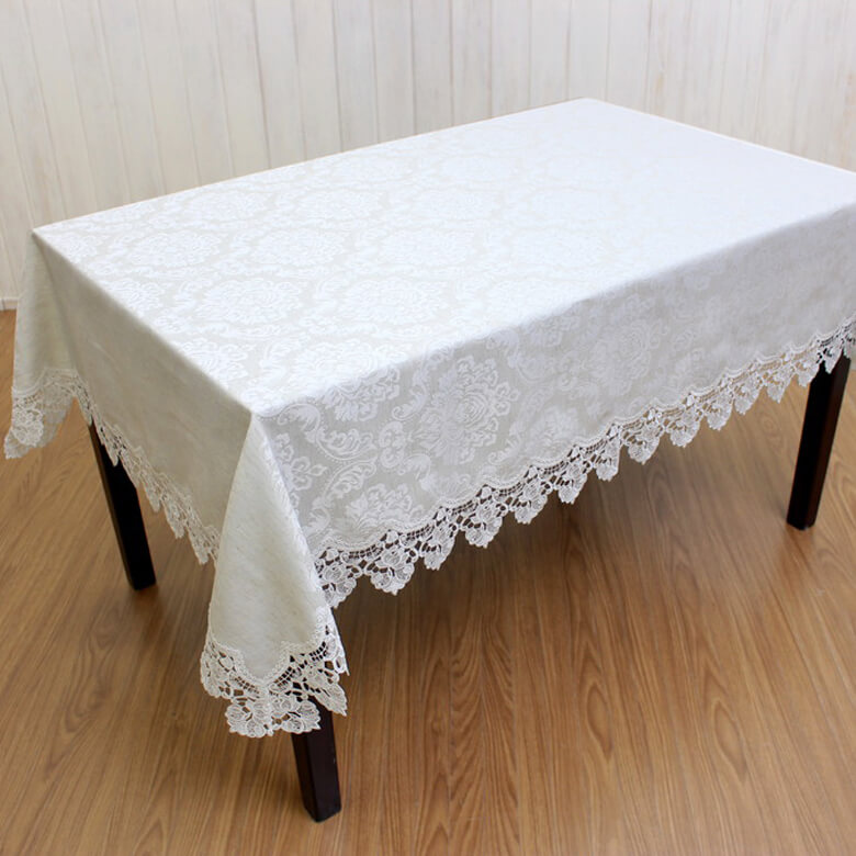 レース&撥水ジャカード テーブルクロス 約130×200cm [Eternelle]