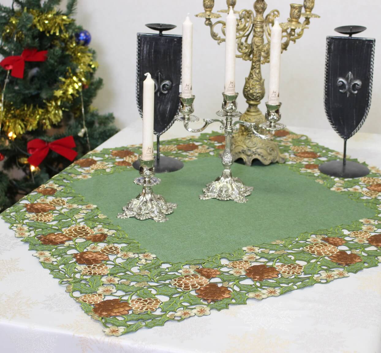 Xmas 松ぼっくり 刺繍 トップクロス 約85×85cm