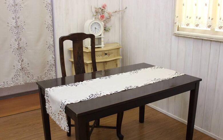 カットワーク刺繍 テーブルセンター 約40×150cm [Rose Metopes]