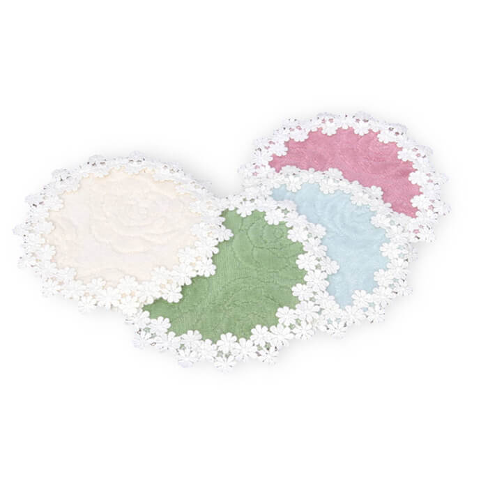 刺繍&カットワーク コースター 約12cm [Ribbon & Rose]