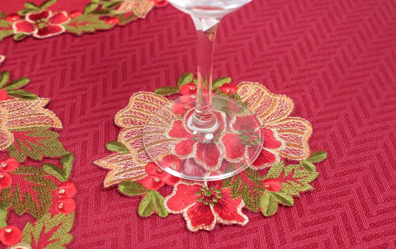 Xmas 白いポインセチア 刺繍 コースター 約13×14cm