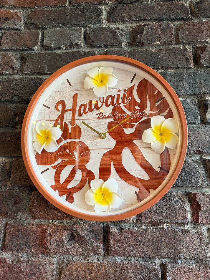 ハワイアン プルメリア レトロ ウォールクロック (ホヌ) 壁掛け時計