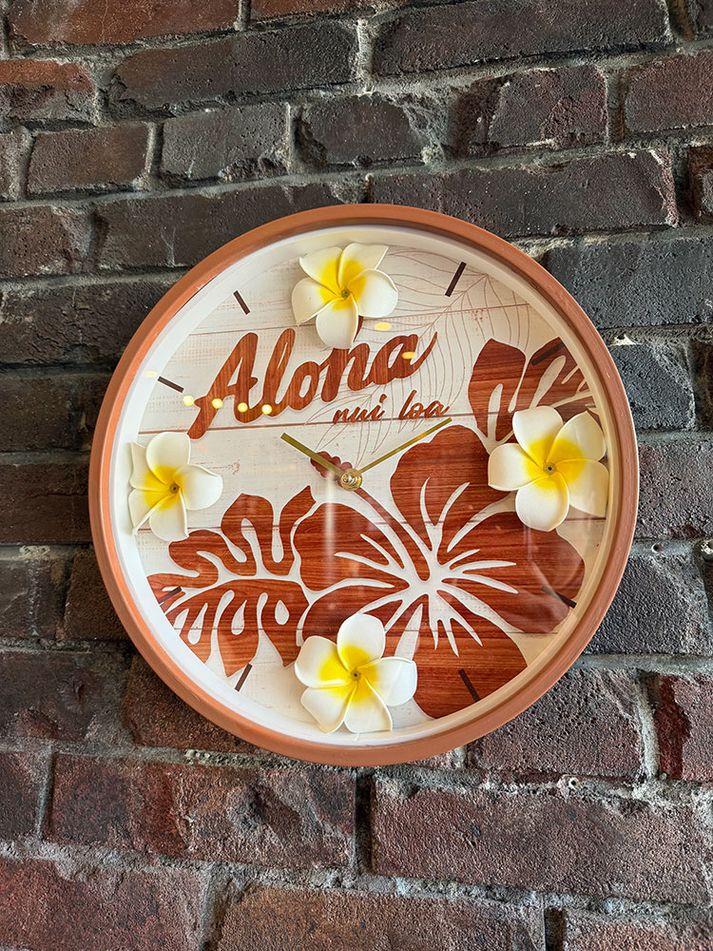 ハワイアン プルメリア レトロ ウォールクロック (ハイビスカス) 壁掛け時計