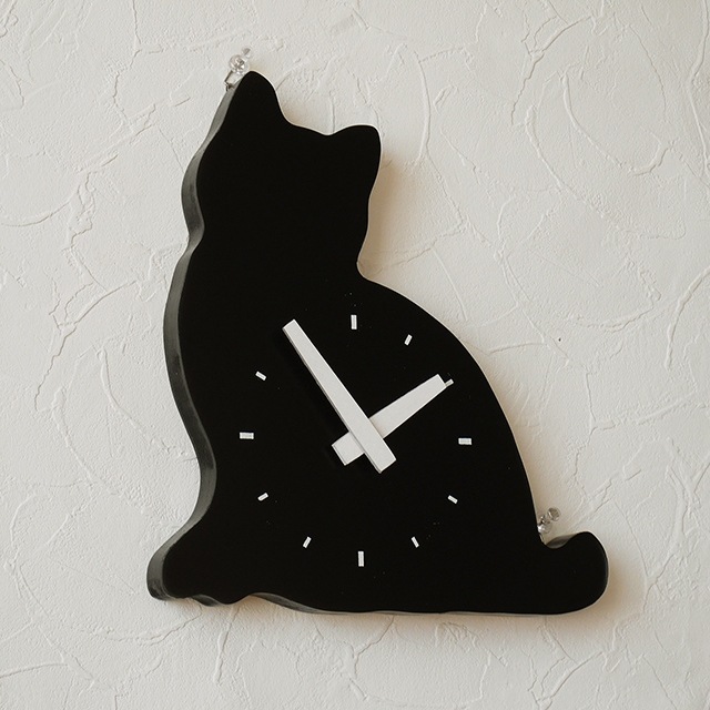 黒猫の壁掛け時計 日本製
