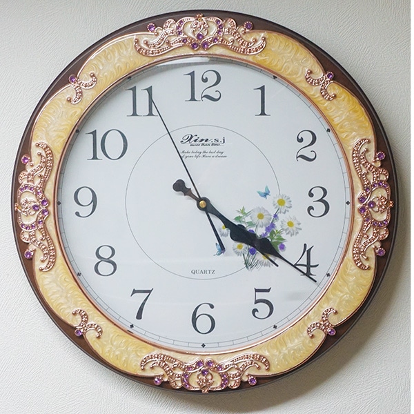 ピンクの飾りが綺麗な壁掛け時計:999【送料無料】無音 展示品 (箱なし)