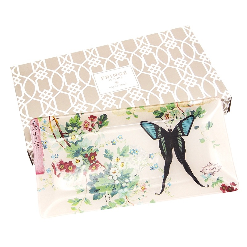 Fringe Studio(フリンジスタジオ) ベース ガラス製 トレイ (黒い蝶)