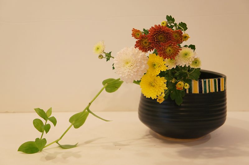 砥部焼・梅山窯・筒花入れ(三つ葉)
