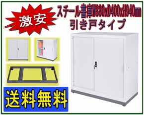 スチール書庫 スチールキャビネット 引き違い書庫 引き戸タイプ ベース付き 書類保管庫 書棚