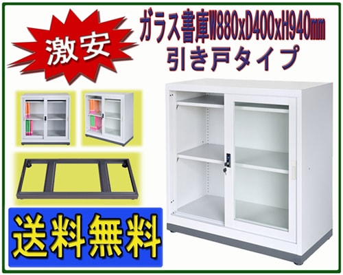スチール書庫 スチールキャビネット 引き違い書庫 ガラス引き戸タイプ ベース付き 書類保管庫 書棚