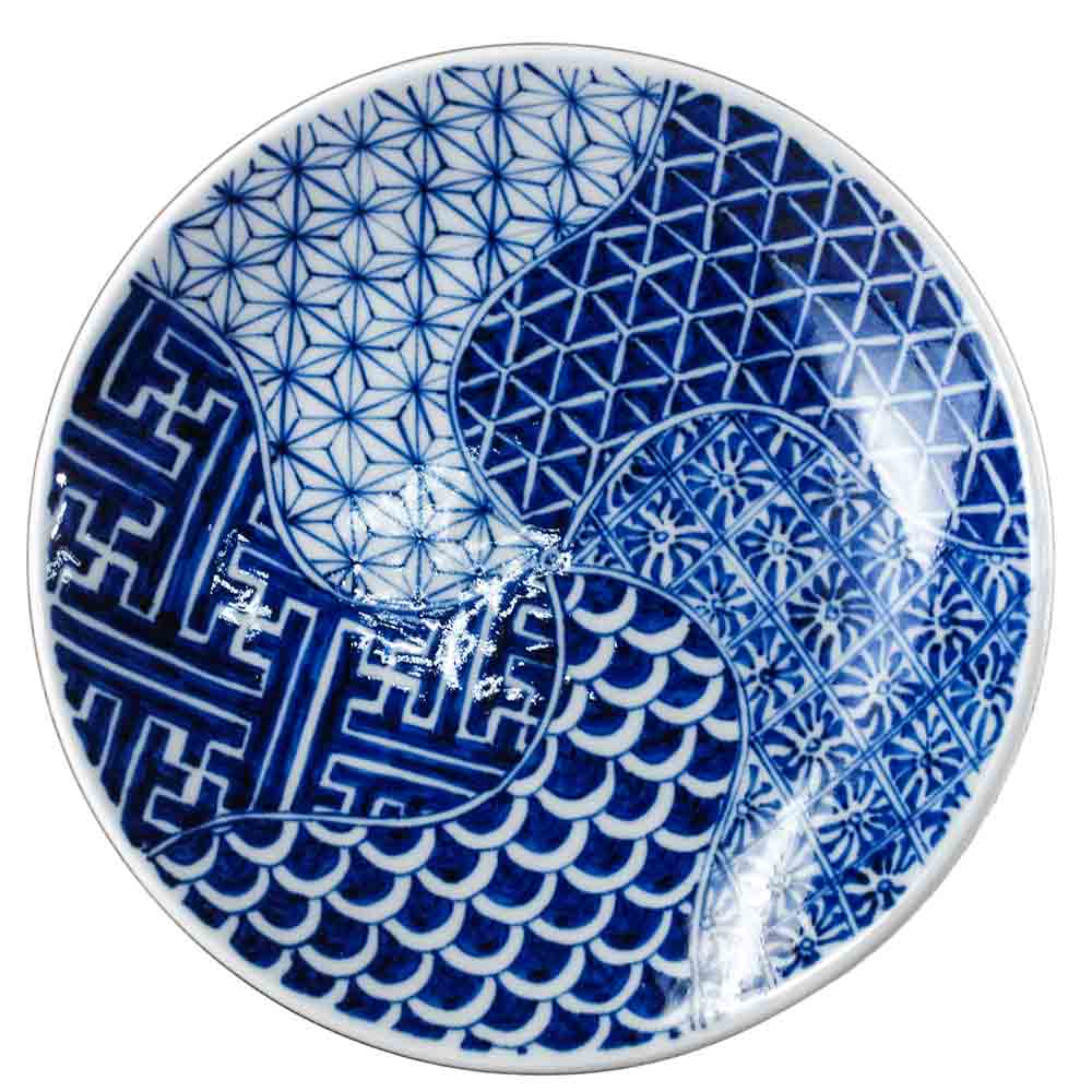 砥部焼 陽貴窯 6寸丸皿(捻り祥瑞)