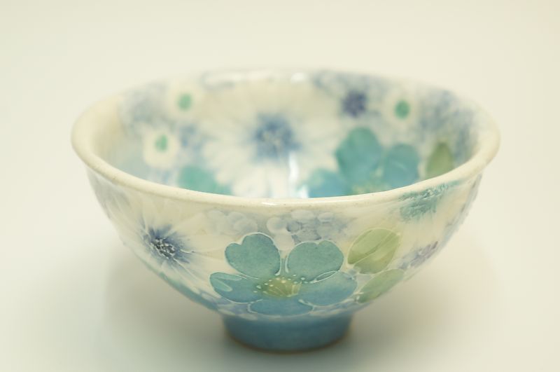 ゆずりは 青彩白花 飯碗