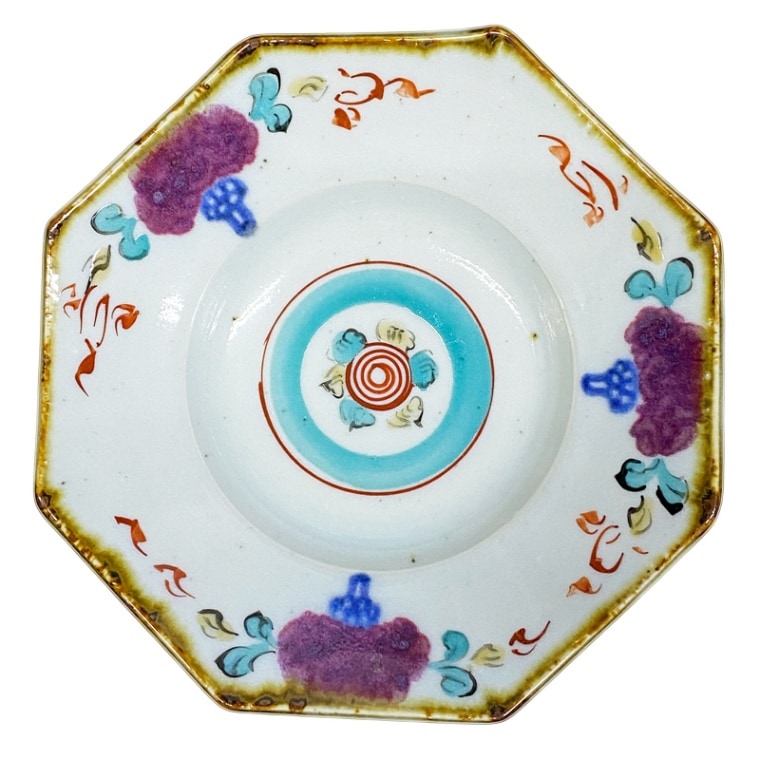 砥部焼 中田窯 角鉢(釉裏紅加彩)