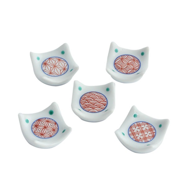 長右衛門窯 箸置セット(角/赤絵小紋) 九谷焼