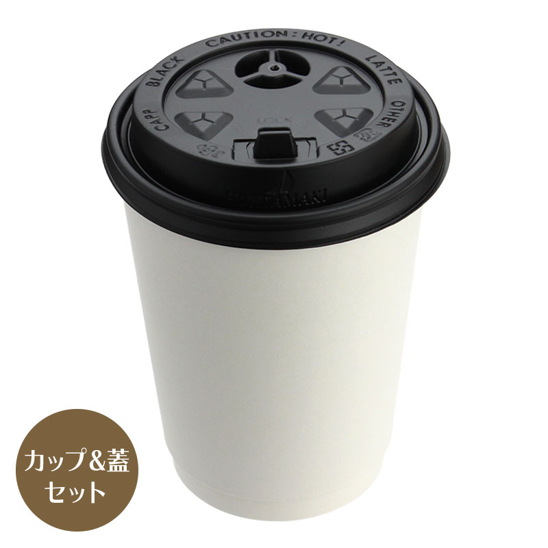 紙コップ蓋付 12オンス 二重断熱 ダブルウォールカップ ユニ プラスリッド 黒200個セット