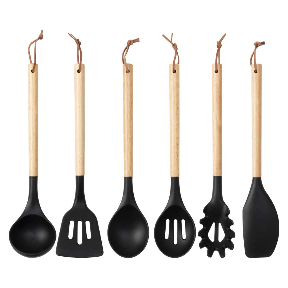ウッドブラック 6点セット レードル・ターナー・調理スプーン・メッシュスプーン・パスタレードル・スパテラ キッチンツール おしゃれ...