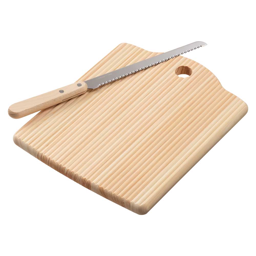 パン切りまな板+包丁セット 国産ひのきのブレッドカッティングボード(薄型)とコンパクトなブレッドナイフ 高知県の木工品と新潟県の金...