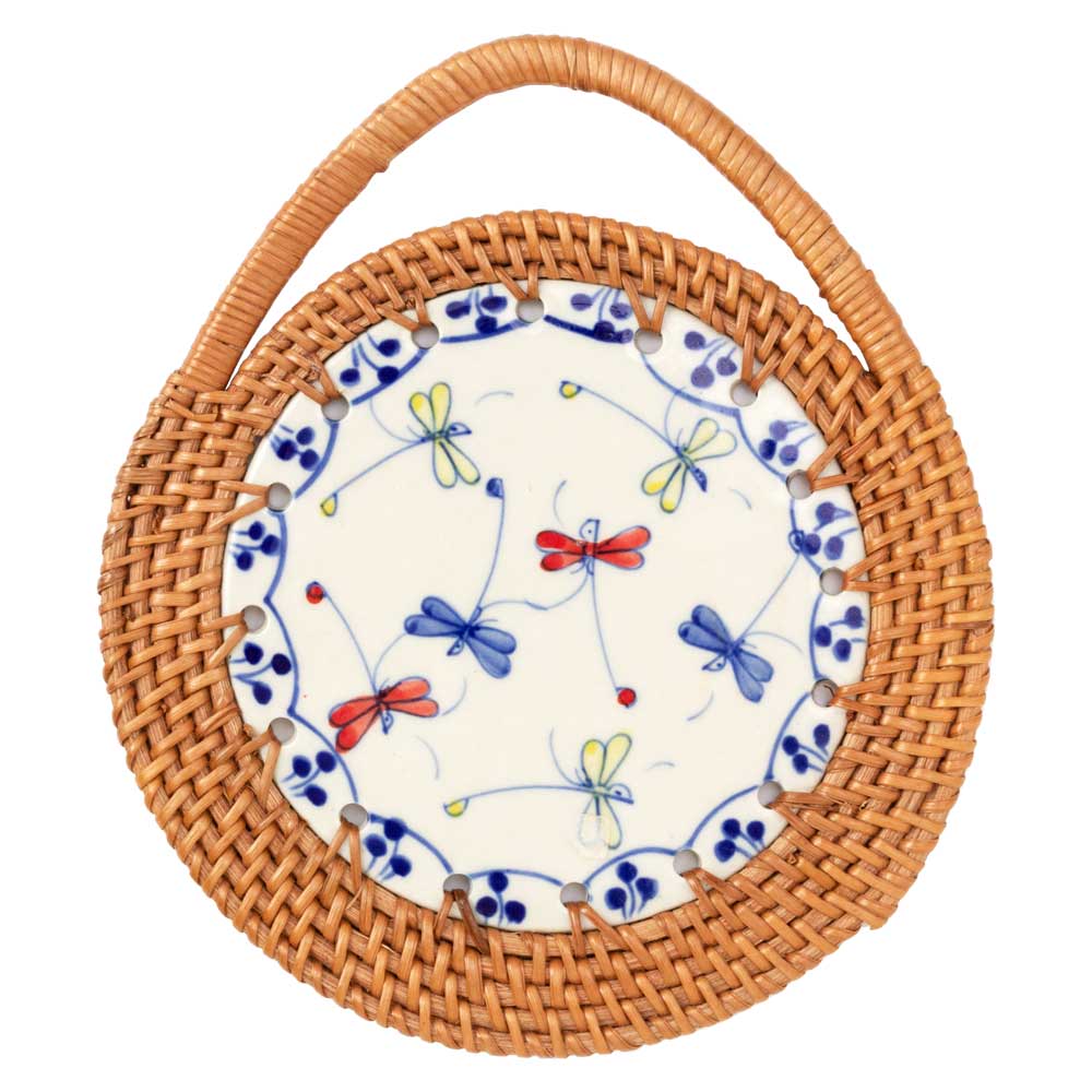 バッチャン焼 鍋敷き とんぼ柄 ベトナムの素朴で温かみのある陶器 B?t Tr?ng dishmat Vietnam craft