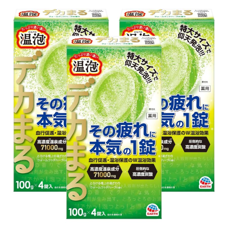 発泡入浴剤 温泡 デカまる ウォームウッドハーブの香り 4錠入×3個 【医薬部外品】 アース製薬