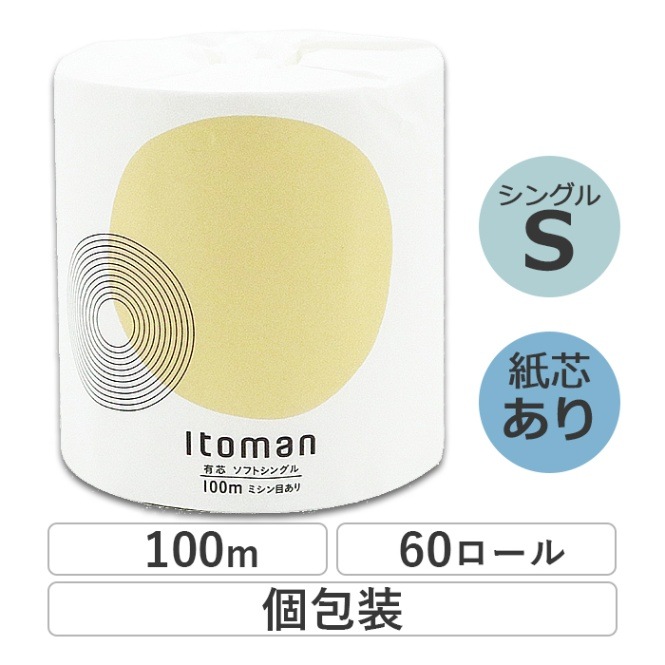 業務用 トイレットペーパー シングル 100m 60ロール イトマン 有芯 普通幅(114mm) 1ロール ミシン目あり 無香料 ...