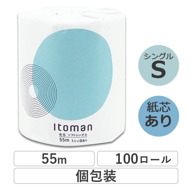 業務用 トイレットペーパー シングル 55m 100ロール イトマン 有芯 普通幅(114mm) ミシン目あり 無香料 10055...