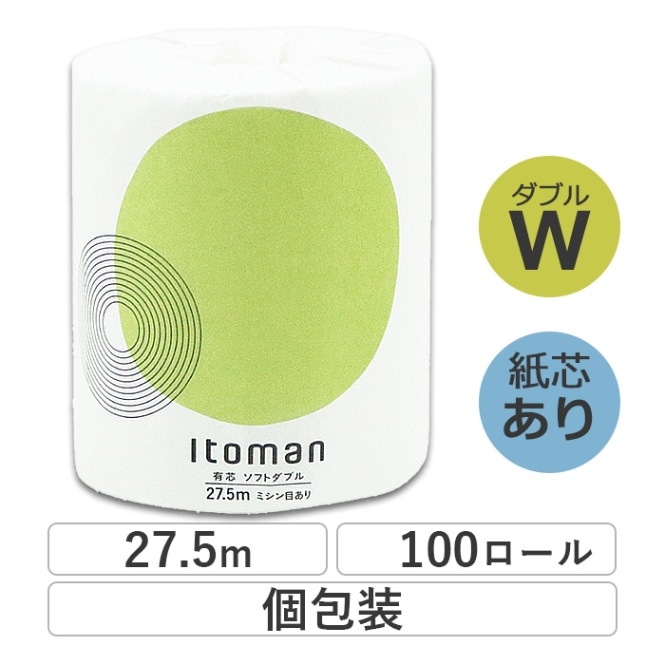 業務用 トイレットペーパー ダブル 27.5m 100ロール イトマン 有芯 普通幅(114mm) ミシン目あり 無香料 無香料 ...