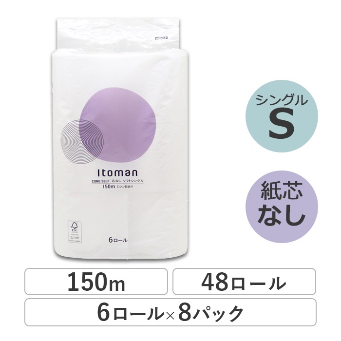 業務用 トイレットペーパー シングル 150m 6ロール 8パック イトマン 芯なし 普通幅(114mm) ミシン目あり 無香料 ...