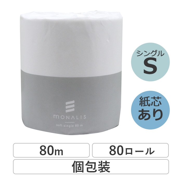 業務用 トイレットペーパー シングル 80m 80ロール モナリス 有芯 普通幅(114mm) ミシン目あり 無香料 100800...