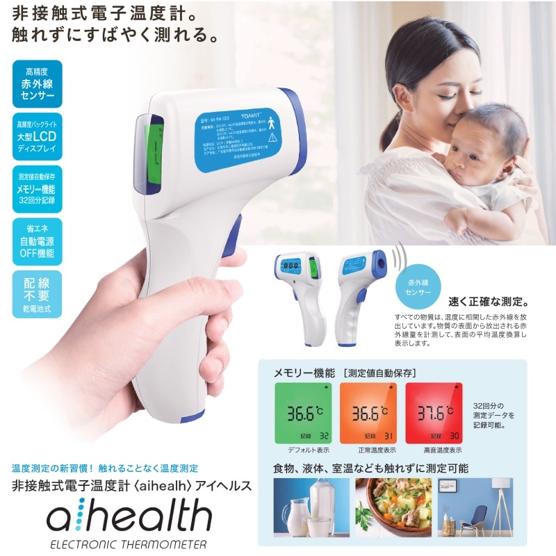 【即納】 非接触式 電子温度計 電池式 メモリー機能付 おでこ温度計 体温も計れる 遠赤外線センサー 高精度 メモリー 配線不要 ...