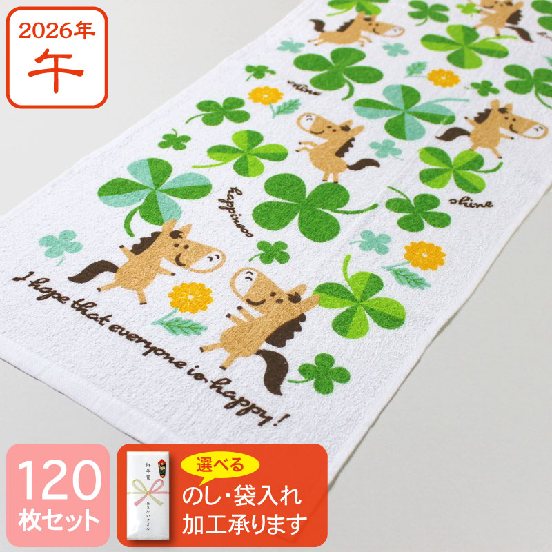 干支タオル お年賀タオル クローバー ウマ 2026年 午年 馬 粗品 ご挨拶・120枚セット