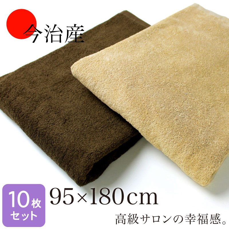 【今治産】超大判サロンバスタオル・ふんわり 2000匁 約95×180cm (ブラウン系)・同色10枚セット