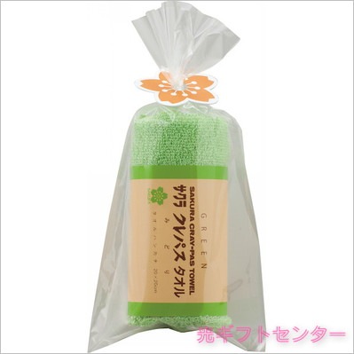 SAKURA クレパスタオル タオルハンカチ グリーン CR23050