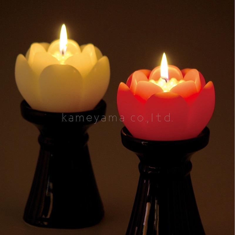 蓮型ローソク『台付華蓮(かれん)【ピンク】燃焼20時間』カメヤマローソク