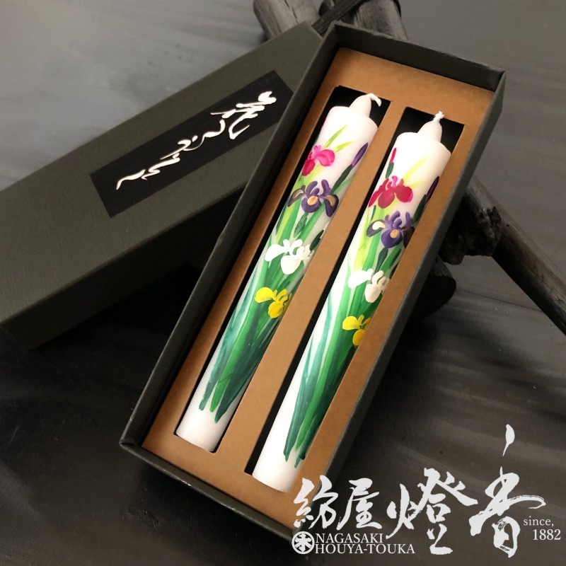 越後花ろうそく『季節折々の花【あやめ(アヤメ)/12cm/2本入】洋蝋燭棒型[燃焼2時間]』小池ろうそく店