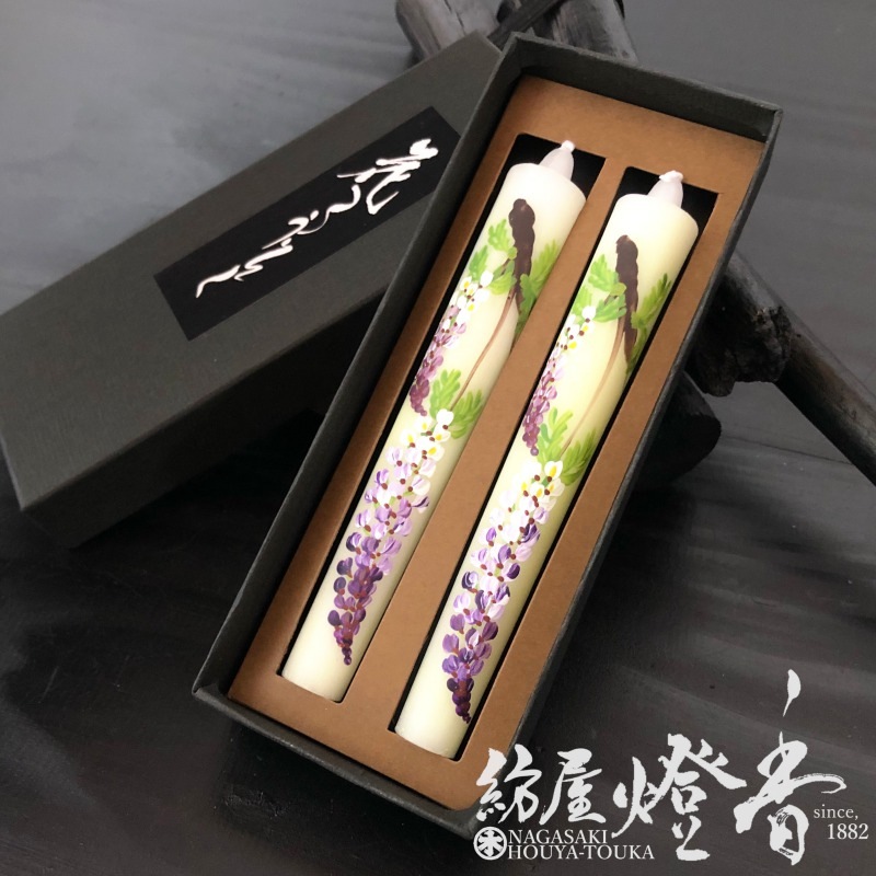 越後花ろうそく『季節折々の花【藤(ふじ)/12cm/2本入】洋蝋燭棒型[燃焼2時間]』小池ろうそく店