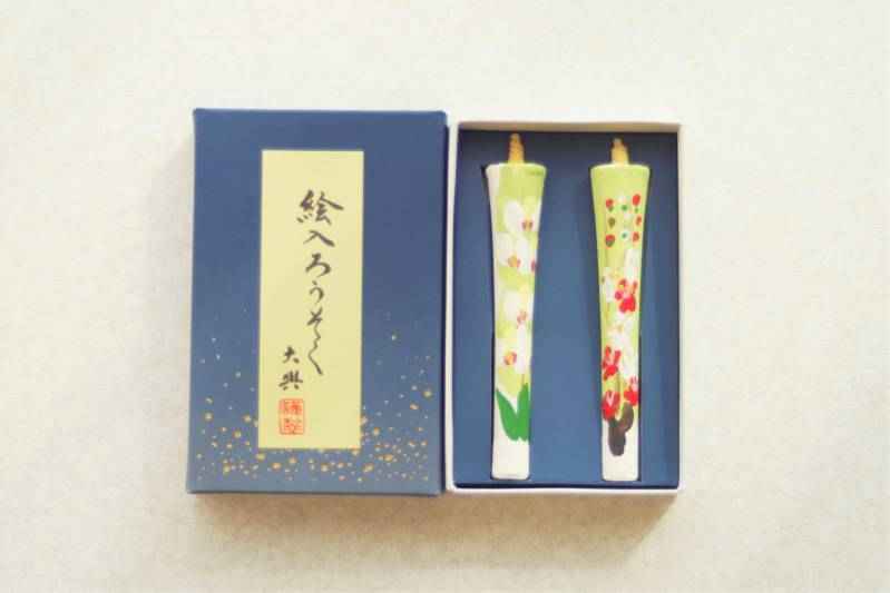 大與 和ろうそく 絵ろうそく 3号2本入 / 縁起柄 / 慶事柄 絵入り キャンドル 植物 仏前蝋燭 ローソク お仏壇 お彼...