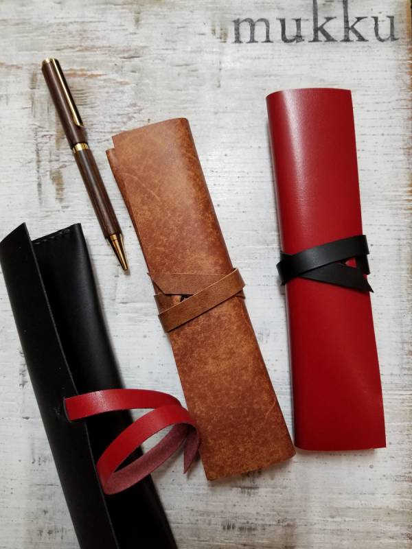 KAKURA【紐巻きペンケース hitoe】ブラック・アンティークブラウン