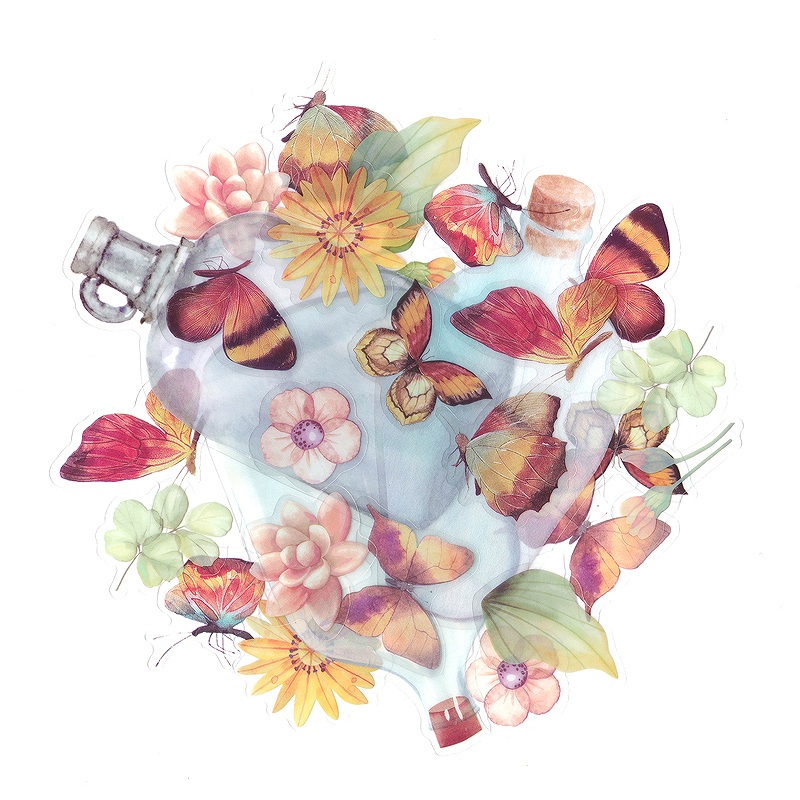 フレークシール セット スクラップ素材 一輪の花シリーズ (ホワイト) PET素材